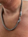 Полновесный браслет.На текущей странице изображено фото мужского серебряного браслета якорного плетения с чернением. Мужским его в первую очередь делают размеры, да и, откровенно говоря, угловатые и несколько грубые формы «Якоря с гранями» в качестве браслета не часто пользуются спросом у девушек, хотя безусловно есть и такие.