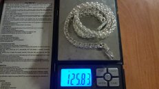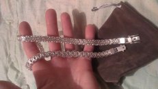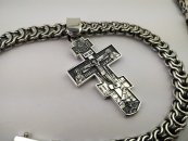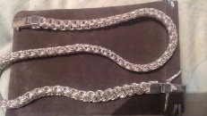 Полновесная цепочка. Очень популярное среди мужчин плетение «Рамзес», также на просторах интернета данное плетение можно увидеть под названием «Двойной обратный бисмарк». В особенности мужское внимание привлекают толстые серебряные цепочки из «Двойного обратного бисмарка» с размерами близкими к размерам на фото. И тем не менее, если такая цепочка лично для Вас смотрится на шее весьма громоздкой или наоборот маловатой, то Вы без особого труда можете откорректировать практически любой её параметр под свои вкусы, в том числе есть возможность выбрать как с чернением, так и нечернёную или же с родированием.