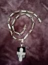 Изображено на кресте: Распятие Христово с предстоящими. Святая Троица. Архангел Михаил. Святые Воины. Тихвинская икона Божией Матери. Православный крест.Высота: 8 мм