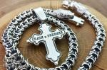 Чоловічий срібний набір: хрест із розп'яттям 40 грам та ланцюжок Рамзес 120 грам