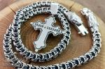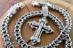 Також можемо виготовити інше вушко для даного хрестика або внести корективи у виріб за Вашим індивідуальним запитом. Масивний срібний набір включає хрест із розп'яттям і ланцюжок плетіння Рамзес із виразним чорнінням. Прикраса виконана в брутальному стилі та підходить для повсякденного носіння.