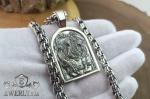 Також можемо виготовити інше вушко для цієї підвіски або внести корективи у виріб за Вашим індивідуальним запитом. Комплект виконаний зі срібла 925 проби з чорнінням та включає масивну підвіску-ладанку та ланцюжок плетіння «Бісмарк».