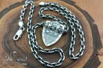 Ланцюжок виконаний у якірному плетінні з гранями: ланки акуратно огранені, що посилює блиск і додає динаміку відбитків. Конструкція забезпечує комфорт при носінні та надійність. Чорнення підкреслює форму кожного елемента та надає прикрасі виразного, брутального характеру. Замок зручний у використанні та гармонійно поєднується із загальним дизайном.