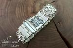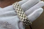 Масивний чоловічий браслет із срібла 925 проби виконаний у складному плетінні «Подвійний Фараон із пластинами». Вага 90 г і ширина 20 мм формують потужний візуальний акцент та підкреслюють статус власника. Довжину та інші параметри браслета можемо змінити під Ваші індивідуальні запити.