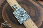 Півмісяць із зіркою на внутрішній декоративній панелі повторює релігійний мотив, поєднуючи зовнішній та внутрішній дизайн. Текстуроване тло та поліровані грані створюють виразну гру світла, підкреслюючи преміальну якість виконання. Надійний замок фіксує підвіску-книгу в закритому положенні, а велике вушко підходить для ланцюжків різної товщини.