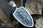 Підвіска «Архангел Михаїл» у формі щита зі срібла 925 проби з чорнінням